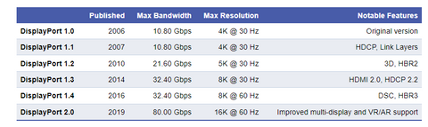 What is the difference between DisplayPort 1.2, 1.3, 1.4, and 2.0? Since 2006, VESA has consistently released new versions of DisplayPort every few years. These tend to improve on the following areas: